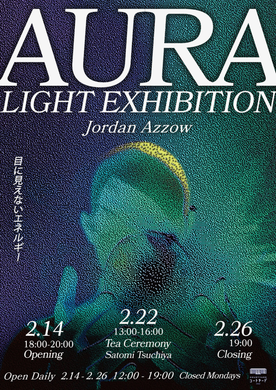 コートヤードHIROOでは、ジョーダン・アゾーの展覧会「AURA」を開催いたします。ジョーダンは昨年2024年1月に来日し、偶然の縁が重なり、私たちのコミュニティにたくさんの力を貸してくれました。本展は日本に戻りここで展示をする、という約束を1年越しに果たしたものになります。このような不思議な出会いも私たち一人一人を取り囲む「オーラ」が影響しているのかもしれません。この神秘的なエネルギーと、私たちの経験に与える深い影響について探っていきます。