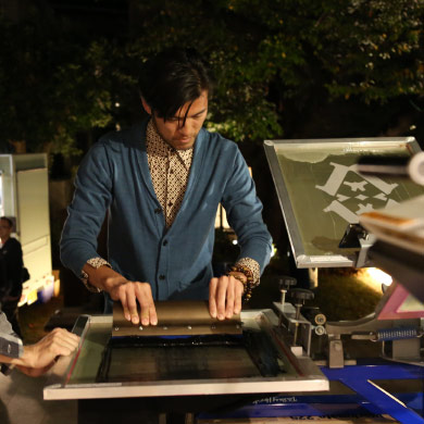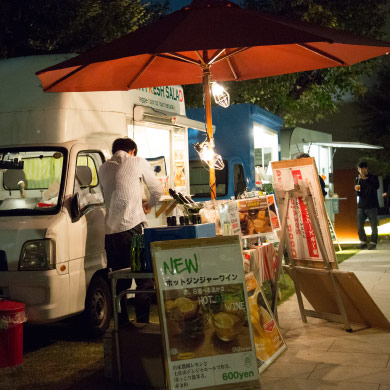 今回のFIRST FRIDAYでは、アーティストに以前のFIRST FRIDAYで好評を得た藤元明氏を迎え、展示、藤元氏デザインのTシャツワークショップを行いました。外では、ヨガスタジオでは佐藤ゴウ先生による「今求められる闘う男性のためのヨガ」のレッスンが行われ、ポップアップショップでアクセサリーなどの販売が行われるなど、多くの人が訪れ活気のある夜となりました。今回も、バリエーション豊富なキッチンカーが来場し、FIRST FRIDAYを彩りました。